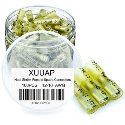 Upgrade your wire connections with the XUUAP 100 pcs Female Spade Connectors. These heat-shrink insulated quick-disconnect electrical crimp terminals are durable, reliable, and easy to use. With thicker copper spade connectors, they provide a strong crimp and excellent electrical conductivity. The insulated heat shrinkable tube wrapped around the connectors offers good sealing, insulation, and vibration resistance. These connectors are ideal for household electrical wire connections, as well as trucks, automotive, and marine boat repairs. They are compliant with ROHS, ISO 9001:2008, SGS, and CE standards. Enjoy the convenience of quick connections and the peace of mind with a reliable electrical connection. Score: 8.2/10