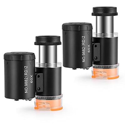The 2 Pieces 60X Mini Pocket Microscope is a handy tool for anyone who needs to examine small objects and inspect details. It offers high magnification, clear image quality, and three built-in lights for enhanced visibility. With its portable and lightweight design, it can be easily carried anywhere. The included protective case ensures the safety of the lens. However, the limited field of view and tiny size may be a drawback for those who require a wider perspective. Additionally, the strong magnification may not be suitable for all purposes. Despite these limitations, this mini microscope is a reliable choice for jewelers, hobbyists, and collectors.