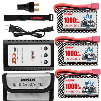The Hosim 3pcs 7.4V 1000mAh 25C T Connector Li-ion Rechargeable Battery Pack is a high-performance battery pack designed for brushless RC cars. With a capacity of 1000mAh, this battery pack provides a long runtime for your RC unit. It features built-in safety protections to ensure safe charging and usage. The pack comes with 1 balance charger, 1 battery bag, 1 double battery connector, and 1 strap. With reliable after-sale service, you can have peace of mind with your purchase. Upgrade your RC car’s battery pack with the Hosim 3pcs 7.4V Battery Pack and enhance your racing experience.