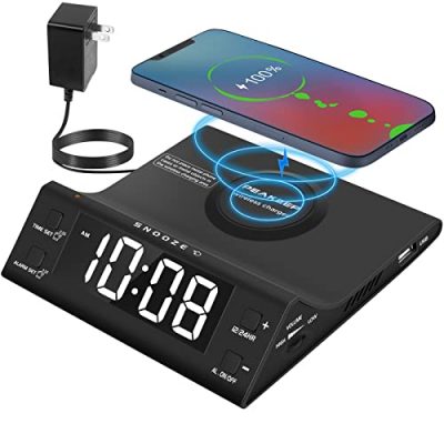 The Peakeep Loud Alarm Clock is a versatile and convenient bedside companion for heavy sleepers. It features wireless charging and a USB port for easy device charging. The clock's ultra-high-sensitivity wireless charging induction coil allows for charging convenience in any position, and the improved design of the charging module supports fast and efficient charging for modern devices like the iPhone 14 and Samsung Galaxy S22. The clock also features a dimmable digital display for easy time reading, an easy-to-use interface with intuitive set buttons, and an alarm volume control. With its thoughtful features and sleek design, the Peakeep Loud Alarm Clock is a great addition to any bedroom. Score: 8.7/10.