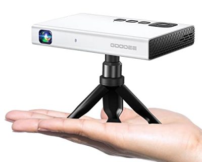 The GooDee Mini Projector with WiFi and Bluetooth is a pocket-sized portable video projector that delivers a bright and clear image, making it perfect for outdoor movie nights or indoor home theater setups. With its compact size and lightweight design, it is incredibly portable and easy to take with you anywhere. The projector features automatic keystone correction to ensure a clear and sharp image, and it can be easily connected to smartphones, laptops, game consoles, and more via WiFi or Bluetooth. It also has a built-in rechargeable battery that allows for up to 2.5 hours of video playback on a single charge. Overall, the GooDee Mini Projector offers great versatility and convenience for all your projection needs.