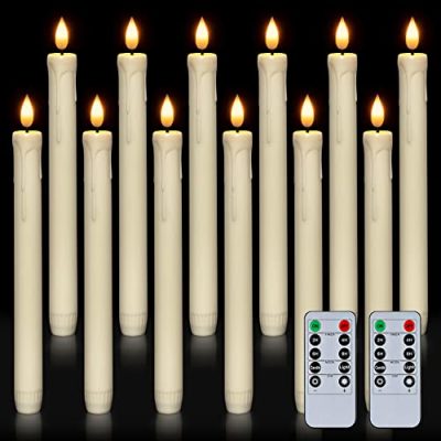 The PChero Real Wax LED Flameless Taper Candles are the perfect addition to enhance the ambiance of any space. These realistic candlesticks feature 3D flames with a black wick and a warm white light that flickers like a real candle. The candles are made of smooth real wax in a classic ivory color, giving them an authentic appearance. With the included remote control, you can easily customize the functions of the candles, including the dimmer, four timers, and flickering flame or steady light. These battery-powered candles have a long-lasting runtime of 120 hours and can be reused for multiple occasions. Illuminate your home decor with these elegant taper candles that will fit any style.