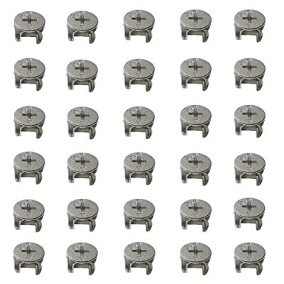 The Yision 30PCS Furniture Cam Lock Nut Connectors Fittings are essential for anyone looking to assemble or repair furniture. Made of durable zinc alloy with anti-corrosion nickel plating, these cam connectors are designed to securely connect various types of furniture, cabinets, drawers, dressers, and wardrobes. With a diameter of 15mm and an overall height of 12mm, these connectors are easy to install and offer a long service life. The set includes 30 solid and durable cam fittings that are resistant to twisting off. They are used together with dowel pin and pre-inserted nut to ensure a sturdy and reliable connection. Whether you're assembling new furniture or repairing existing pieces, these cam lock nut connectors are a must-have!
