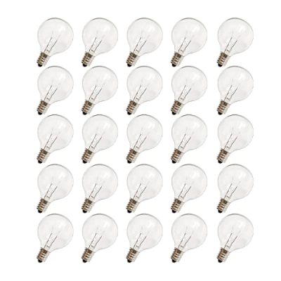The CHYParty G40 Replacement Light Bulbs are ideal for indoor and outdoor decoration and lighting. These vintage incandescent bulbs are made of high-quality tungsten and glass, providing a warm white glow without strobes or radiation. With a candelabra screw base, they fit both C7 and E12 sockets for easy installation. The 1.5-inch G40 clear bulbs come in a pack of 25, ensuring you have plenty for your lighting needs. These bulbs are perfect for creating a cozy atmosphere in your garden, backyard, balcony terrace, or indoor wedding party. They are packed securely to prevent damage during transportation. These bulbs are available in both clear glass and shatterproof LED options. Overall, the CHYParty G40 Replacement Light Bulbs offer a durable and stylish solution for all your decorative lighting needs.