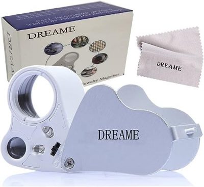 The DREAME 30X 60X LED Light Illuminated Jewelers Eye Loupe Magnifier is a portable and foldable magnifier that is perfect for jewelry authentication, as well as for examining gems, rocks, stamps, coins, watches, and more. With its super bright LED light, you can easily see objects even in dark environments. The magnifier comes with two lens options – 30x and 60x, allowing you to observe objects more clearly. It is lightweight and easy to carry, and it comes with a small case for protection. The loupe is also easy to use and can be folded when not in use. Overall, the DREAME 30X 60X LED Light Illuminated Jewelers Eye Loupe Magnifier is a handy tool for anyone who needs to examine small objects.