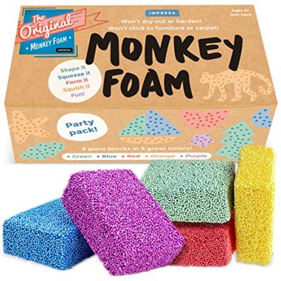 The IMPRESA Original Monkey Foam is an excellent product for creative play and sensory stimulation. It comes in a pack of 5 giant blocks in 5 vibrant colors – green, blue, red, orange, and purple. This foam is perfect for kids to squeeze, shape, and form, providing hours of fun without any mess. The foam won't dry out or harden, making it easy to store and reuse. It's a great alternative to playdough, play sand, sculpting foam, and molding clay. The foam is non-toxic and safe for children, tested to be free from lead and phthalates. It is also easy to clean up, as it won't stick to furniture or carpet. Overall, the IMPRESA Original Monkey Foam is a fantastic tool to foster creativity and artistic skills in kids.