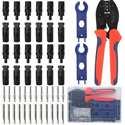 The YXGOOD Solar Crimping Tool is a practical kit for installing solar connectors easily and accurately. It features a durable high carbon steel crimper with a ratchet mechanism and a comfortable non-slip handle for easy operation. The kit includes 12 pairs of MC4 solar connectors with a stable self-locking mechanism for easy connection and disconnection. With a 4.5/5 customer rating, users have found the connectors to be solid and compliant with the MC4 standard. The crimps are tight and waterproof when used with the correct gauge wire. The kit also comes with a pair of spanners for added convenience. However, some users have noted that the instructions provided are basic and a cable stripper is not included. Overall, the YXGOOD Solar Crimping Tool is a high-quality kit that provides everything needed to complete solar panel installations.