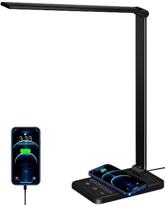 The GLITI LED Desk Lamp with Wireless Charging is a versatile and convenient lighting solution for your home, office, or college dorm. With 5 light colors and 6 brightness levels to choose from, you can easily find the perfect lighting for any task. The lamp also features a USB charging port and a 10W wireless charger, allowing you to charge your mobile devices while keeping them within reach. Its foldable design makes it easy to adjust the light direction and save space. With a sleek black color and a bright, flicker-free light source, this desk lamp provides long-lasting comfort. The lamp includes a charger and offers a 30-day replacement window for any inquiries. Overall, the GLITI LED Desk Lamp with Wireless Charging is a great addition to any workspace.