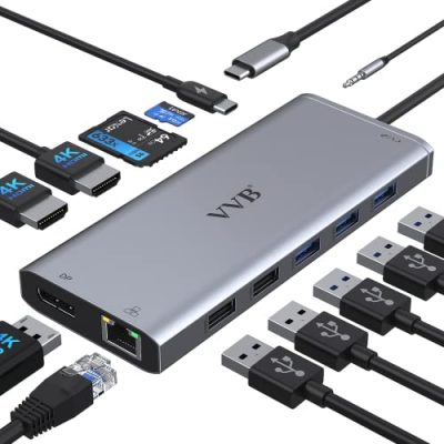 The USB C Laptop Docking Station is a reliable and feature-packed hub that offers extensive connectivity options for laptops. With its 14 ports, including multiple display options, high-speed data transfer, power delivery, and Gigabit Ethernet, it covers all the essential needs of users. The docking station’s wide compatibility makes it suitable for various Type C laptops, ensuring seamless connectivity. While there may be some minor drawbacks like the potential for distorted aspect ratio on HDMI-connected screens and the shorter cord length, overall, this docking station offers great value for its price. Whether for work or travel, it provides convenience and efficiency by consolidating multiple connections into one hub.