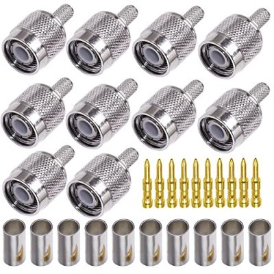 - TNC Male connectors(10 pack); Color: silver; Outer Material: nickel plated; Pin contact: pure copper; Impedance: 50 ohm, Low-loss