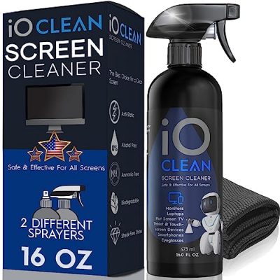 The Screen Cleaner Spray (16oz) is a high-quality cleaning solution designed for all electronic screens, including LCD, LED, and OLED TVs, smartphones, iPads, laptops, and more. Its advanced formula gently removes dust, stains, fingerprints, and grime without leaving any scratches. The cleaner also forms a protective layer that repels dirt and reduces static electricity, resulting in a streak-free shine. This 16.9 Fl Oz kit includes a convenient recyclable bottle, two different sprayers (push button for small devices and trigger sprayer for larger screens), and a microfiber cloth for premium screen cleaning. The formula is 100% biodegradable, non-toxic, and safe for use around family and pets. With great customer ratings and positive reviews highlighting its effectiveness, the Screen Cleaner Spray is a reliable choice for everyday screen care.