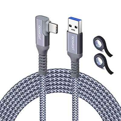 The aceyoon Link Cable 10ft is a high-speed data transfer and fast charging VR headset cable designed for Oculus Quest 2 and Quest 1. With a length of 10ft, this VR USB C cable offers a spacious 15 square meters activity area, allowing for greater freedom of movement during gameplay. It features a 90-degree L connector and comes with additional velcro straps to prevent disconnection and keep the cable organized. The cable is made of durable nylon braid for increased durability. It supports fast charging up to 60W and offers a data transfer rate of up to 5Gbps. With its compatibility and quality assurance, the aceyoon Link Cable provides an immersive VR gaming experience.