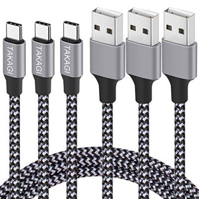 The TAKAGI USB Type C Cable is a high-quality, fast-charging cable that is compatible with a range of devices. It offers a 3A fast charge, with a transfer speed of 40~60MB/S (480Mbps), making it 25% faster than other cables. The cable is internationally safe certified, ensuring its quality and safety. It has enhanced durability, with strong fiber material that can withstand 10000+ bending tests. The premium aluminum housing and nylon braided design make it tangle-free and long-lasting. It is compatible with a wide range of devices, including Galaxy S20/S20+ Ultra, S10, S10E, S9, S8, Note 10, 9, 8, Moto Z/Z2, LG G5/G6/V20/V30, and more. The cable comes in a pack of three, with a length of 6 feet each. It is available in gray color.