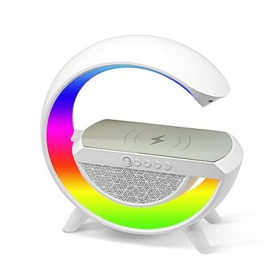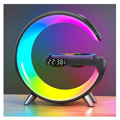 The Renyqatt 4 in 1 Wireless Charger Atmosphere Lamp with Bluetooth Speaker is a versatile and functional device that combines an ambient light, a Bluetooth speaker, a wireless charger, and an alarm clock. Its adjustable ambient light feature offers 10 different brightness modes and 256 light modes, allowing you to create the perfect lighting atmosphere for any occasion. The built-in Bluetooth speaker enables you to connect your phone and enjoy your favorite music or create white noise for better sleep. With 15W super fast wireless charging capability and a dedicated app for remote control, this device provides convenience and intelligence. It's an excellent gift choice for bedroom decor and special occasions.