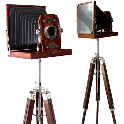 The collectiblesBuy Floor Standing Home Decor Retro Film Props is a beautiful replica of an antique wooden camera on a tripod stand. Handmade by Indian artisans, this camera is made with high-quality wood, aluminium, glass, and cardboard. It is not only a gift for friends but also serves as a decorative piece that adds an artistic touch to any home or office. The floor standing wooden camera features exquisite details and artwork-level decorations that make it more realistic and visually appealing. With its vintage look and retro charm, it is perfect as a home decor item or as a premium gift for special occasions like wedding anniversaries or housewarmings.