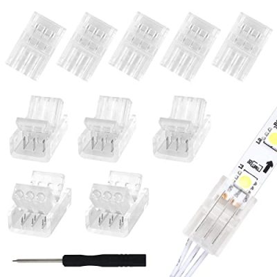 The RGBZONE 10Pcs LED Strip Connectors are perfect for extending your LED strip lights. They are suitable for waterproof and non-waterproof WS2812B/WS2812/WS2811 LED strip lights and 3-pin LED extension cables. These connectors are easy to use, with a sharp copper thorn design that directly penetrates the PVC to contact the copper wire. No soldering or wire stripping is required. The premium transparent PC material reduces the dark area in your DIY LED light strips project. Just make sure the contacts touch the copper pins while installing. With a customer rating of 4.2/5, these connectors have received positive reviews for their ease of use and reliable connections.