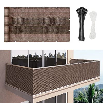 The Duerer Balcony Screen Privacy Fence Cover is a brown fence netting mesh shade cloth designed for apartment balconies, outdoor spaces, and more. Made of high density polyethylene (HDPE) recycled material, it is UV stabilized to prevent fading and offers up to 90% blockage for privacy. The breathable fabric allows air to pass through while providing protection from wind and rain. With easy installation options using cable zip ties or rope, this privacy screen is versatile and can be used in various outdoor areas. Customers have praised its durability, color, and effectiveness in providing privacy. However, some have noted that it can be slightly see-through and may require additional zip ties for installation. Overall, the Duerer Balcony Screen Privacy Fence Cover is a reliable and affordable option for enhancing privacy in outdoor spaces.