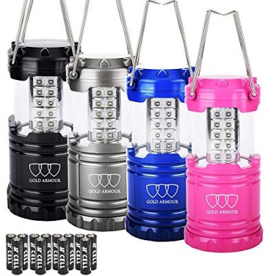 The Gold Armour 4 Pack LED Camping Lantern Portable Flashlight is a reliable and versatile camping companion. With 30 individual low-powered LED bulbs, this lantern provides ultra-bright 360-degree lighting with a lifespan designed to last. The lantern is built with military-grade, water-resistant plastic, making it durable for both indoor and outdoor use. It includes 12 AA batteries, offering up to 12 hours of continuous use. The lantern is a great value, making it an ideal gift for camping enthusiasts. It comes with a 90-day return refund guarantee, 15-year warranty, and lifetime support from Gold Armour. With its bright light and long battery life, the Gold Armour LED Camping Lantern is perfect for emergencies, hurricanes, power outages, and camping trips.