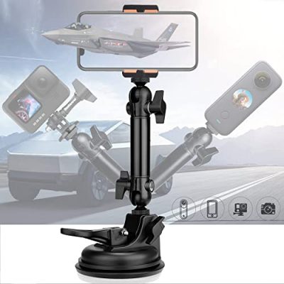 The SUREWO Suction Cup Camera Car Mount is a versatile and durable mount that allows you to easily capture professional-quality photos and videos. It features multi-angle adjustment, allowing you to find the perfect shooting angle. The suction cup is strong and reliable, providing powerful adsorption force on any smooth surface. It can be used on various surfaces such as glass, tiles, tables, and more. The mount is compatible with action cameras that have a 1/4-inch screw hole, making it suitable for GoPro Hero, Xiaomi YI, SJCAM, and more. It also includes a phone suction cup bracket that is compatible with iPhone, Samsung Galaxy, Google Pixel, and other popular phone models. Overall, the SUREWO Suction Cup Camera Car Mount offers excellent versatility, durability, and compatibility for capturing amazing shots.