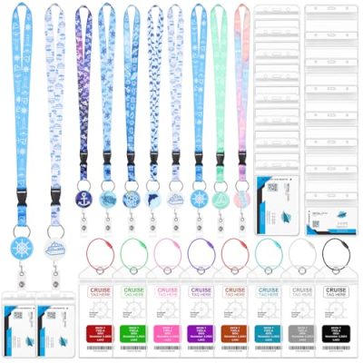 The ROADPLUM 8 Pack Cruise Lanyards Set offers a complete and stylish solution for organizing your cruise essentials. With sturdy and waterproof luggage tag holders, versatile horizontal and vertical card holders, and attractive sea-themed designs, this set has everything you need for a hassle-free cruise experience. The detachable lanyards add convenience, while the clear and durable card holders keep your cards and tags safe. The only minor drawback is the retractable badge reel, which could be more powerful. Overall, this set is a great value for its quality and variety, making it a must-have for any cruiser.
