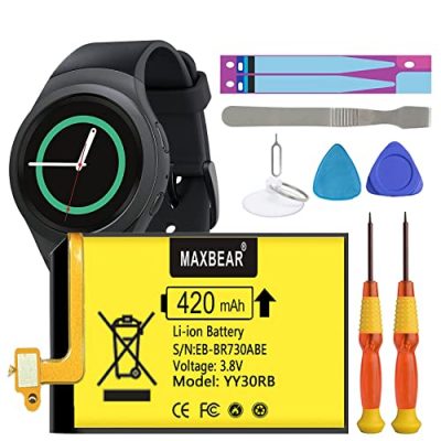 The MAXBEAR Galaxy Gear S2 Battery is a high-quality replacement battery for the Samsung Galaxy Gear S2 smartwatch. With a capacity of 420mAh, this lithium-ion battery is designed to bring new life to your device. It is made of grade A premium battery cells, ensuring long-lasting durability. The battery also features a built-in microchip to prevent over-charging, over-discharging, and over-heating, which helps to extend its overall lifespan. With strict quality control and certifications from CE, ROHS, and UL, you can trust the reliability of this replacement battery. The MAXBEAR Galaxy Gear S2 Battery is compatible with the Samsung Galaxy Gear S2 models SM-R730, SM-R735, and SM-R600. It comes with a repair tool kit and is backed by a 12-month warranty for customer satisfaction.