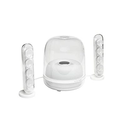 The Harman Kardon HK SoundSticks 4-2.1 Bluetooth Speaker System combines an iconic design with extraordinary sound. This speaker system features wireless Bluetooth streaming, allowing you to easily connect your devices and enjoy your favorite music. The powered subwoofer delivers rich bass, enhancing your audio experience. With its inspiring industrial design and crisp white color, the SoundSticks 4 adds a touch of elegance to any space. The dimensions of the system are 14.53Lx11.30Wx12.72H, making it a compact option for your home or office. With a customer rating of 4.5/5, this speaker system has received positive reviews for its performance and design.