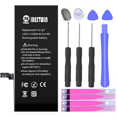 The IBESTWIN Battery for iPhone 7 is a high-capacity replacement battery designed to bring life back to your iPhone 7. With a capacity of 2200mAh, this battery provides 12.2% more power than the original standard battery. It is made with top-rate premium A battery cell and features built-in smart Chip for multi-protection against over-charging, over-discharging, and over-heating. This battery is easy to install with the included removal tool kit and instructional video guide. It is compatible with iPhone 7 models A1660, A1778, and A1779. The package includes 1 replacement battery and 1 removal tool kit. With a 3-year warranty and strict quality control standards, this battery offers a reliable solution for prolonging the life and performance of your iPhone 7.