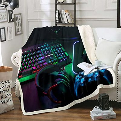 The Erosebridal Gaming Blanket is a cozy and stylish addition to any gamer's room. This queen-sized blanket features a super soft flannel fleece on one side and a plush sherpa lining on the inside, providing warmth and comfort. Its elegant design adds texture to your decor and can be draped over a chair, couch, or bed. The blanket is made of 100% microfiber polyester, making it suitable for people with sensitive skin or allergies. With its diverse usage, it can be used as a couch throw, bed blanket, outdoor indoor blanket, and more. The Erosebridal Gaming Blanket is easy to care for with cold machine wash and low heat tumble dry.