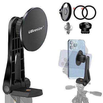 The UBeesize Adjustable Magnetic Tripod Mount Adapter is a versatile and convenient accessory for your iPhone. With its magnetic attraction and screw mechanism, it allows for 360° rotation and easy positioning in landscape or portrait mode. It supports all mobile phones, especially designed for the Apple iPhone 14/13/12 series, and comes with 2 metal rings to enhance magnetism. The metal ring is electroplated to prevent rust and a metal cover is included for charging while using the stand. The tripod mount adapter is easy to use, provides strong magnetic suction, and protects your phone from scratches. It comes with a 2-year warranty for satisfactory service.