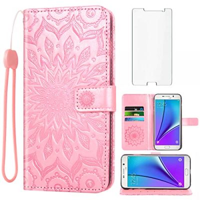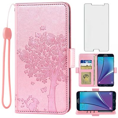 The Phone Case for Samsung Galaxy Note 5 Wallet Cases is a stylish and functional accessory for your smartphone. It comes with a tempered glass screen protector and a leather slim flip cover. The case has a card holder and three card slots, allowing you to keep your credit cards, cash, ID, and money all in one place. The kickstand feature allows you to comfortably read, watch videos, or use Facetime at different angles. With its rose gold color and sleek design, it is perfect for women. The case also offers premium service with 24-hour customer support and a warranty for defective products. Overall, it is a convenient and stylish option for Samsung Galaxy Note 5 users.