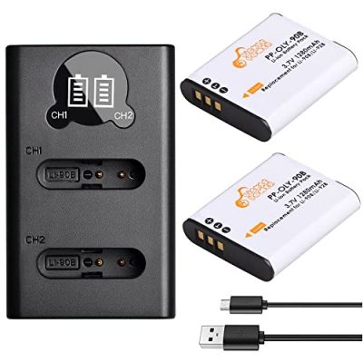 The Pickle Power Li-90B Battery and 2 Pack Li-92B Batteries with LED Dual Charger is a must-have accessory for Olympus Tough TG-6, TG-5, TG-Tracker, SH-1, SH-2, and more cameras. This replacement battery is 100% compatible and offers extra long life with memory-free technology. The LED USB Dual Charger allows you to charge one or two batteries simultaneously, and it comes with multiple circuit adjustment and protection. With this charger, you can connect to a car charger, USB wall charger, or power bank. The package includes 2 batteries, 1 LED USB Dual Charger, 1 USB Cable, and 1 Manual. Enjoy peace of mind with a 30-day money-back guarantee and 2-year warranty.