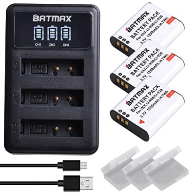 The Batmax 3Pcs 1280mAh LI-90B LI-92B Battery + 3-Slots LED USB Charger with Type C Port is a must-have accessory for Olympus Tough TG-6, TG-5, TG-Tracker, Tough TG-1 iHS, TG-2 iHS, SH-50, SH-60, XZ-2 iHS, SH-1, SH-2 Cameras. The rechargeable Li-ion battery has a capacity of 1280mAh and provides longer battery life with no memory effect. The package includes 3 batteries, a charger with LED display and a micro USB cable. The charger features constant current control to prevent over-voltage and over-charging, as well as short-circuit protection. It is portable and convenient to carry, making it perfect for travel. However, some customers have reported that the batteries die quickly and do not stay in the charger securely. Overall, the Batmax Battery + Charger is a reliable and affordable option for Olympus camera users.