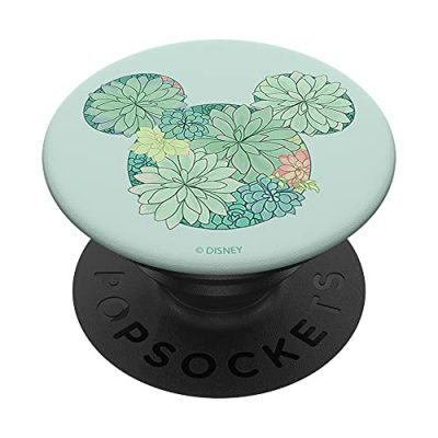 The Disney Mickey & Friends Succulents Filled Mouse Silhouette PopSockets Swappable PopGrip is a fun and stylish accessory for your mobile device. Officially licensed by Disney, it features a cute Mickey Mouse succulent design. The PopGrip is swappable, allowing you to switch out the top for another design or remove it completely for wireless charging. It also functions as an expandable stand, making it easier to watch videos, take group photos, and more. The advanced adhesive allows for easy removal and repositioning on most devices and cases, although it may not stick to certain silicone, waterproof, or highly textured cases. Overall, this PopSocket offers both functionality and a touch of Disney magic to your mobile experience.