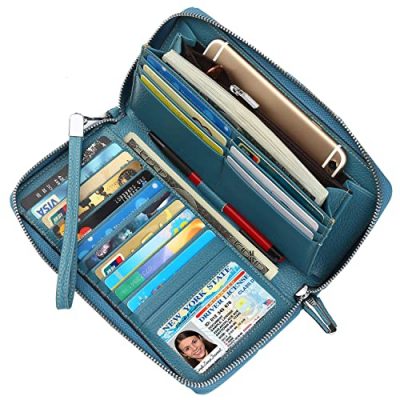 The Lavemi Women's RFID Blocking Leather Wallet offers both style and security. Made from top grain leather with a pebbled finish, this wallet is not only luxurious but also durable. Equipped with advanced RFID blocking technology, it ensures that your valuable information is protected from unauthorized scans. The wallet features multiple card slots, currency pockets, a zipper pocket for change, and even a pen loop. It comes with a detachable wristlet strap for convenience and is sized perfectly to fit a cell phone like the iPhone XR/11 Max/11 Pro Max. Packaged in a gift box, it makes for a special present on various occasions. Despite one customer review questioning its RFID blocking effectiveness, most customers praise the wallet's design, long-lasting quality, and ample storage space.