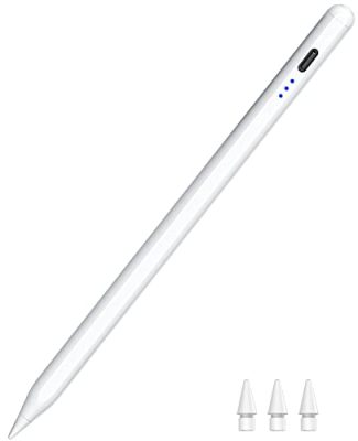 The Stylus Pen for iPad 9th&10th is a versatile and efficient tool designed specifically for iPad users. It offers palm rejection technology, allowing you to rest your hand on the screen while writing or drawing without any interference. The pen has tilt sensitivity, providing a realistic drawing experience, and comes with additional replacement nibs for extended use. With a smart touch switch and magnetic function, it is easy to turn on and off and can be conveniently attached to your iPad when not in use. The Type-C charging design ensures quick and efficient charging, and the pen offers a long battery life of up to 8 hours. With its compatibility and user-friendly features, this stylus pen is a great accessory for any iPad user.
