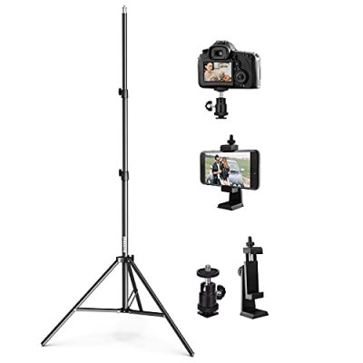 The Dazzne Phone Tripod Stand is an ultra-tall and adjustable tripod designed for video recording, vlogging, filming, and photography. With a maximum height of 80 inches (200cm), this tripod allows for unique angles and versatile shots. It features a 360° rotating ball head and a phone holder that is compatible with most smartphones, including popular models like iPhone12/11/X/Xr/8/7. The tripod is constructed with premium aluminum alloy, making it sturdy, durable, portable, and lightweight. It also comes with a universal 1/4 inch threaded screw tip for easy attachment of photographic equipment. Overall, the Dazzne Phone Tripod Stand offers stability, flexibility, and excellent support for capturing professional-quality content.
