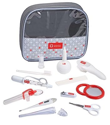 The American Red Cross Deluxe Health and Grooming Kit is a must-have for parents looking to take care of their infants and toddlers. This deluxe baby health kit comes with all the essential grooming items like a brush, comb, scissors, nail clipper, fingertip toothbrush, toddler toothbrush, and mirror. It also includes important health items such as a nasal aspirator, digital thermometer with case, medicine dropper, and comfort tip medicine spoon with cap. To make it even more convenient, all these items come in an easy-to-carry tote bag, perfect for on-the-go use. The kit also includes a baby care, wellness, and safety guide to provide parents with valuable information. Overall, this kit is a great starter kit and makes for a perfect baby gift.
