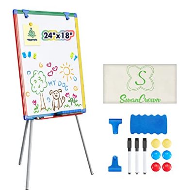 The Dry Erase Board White Board for Kids is a versatile magnetic whiteboard and flipchart board with a height-adjustable stand. It provides an excellent writing and wiping experience with a smooth and durable magnetic surface. The package includes a full pen set of dry erase markers, a whiteboard eraser, and magnets. The sturdy tripod stands and adjustable height feature make it suitable for kids and adults alike, providing comfort in seating or standing positions. The whiteboard is lightweight, easy to carry, and comes with a customized environmental bag for convenient storage. With flipchart hooks and a pen tray, it’s ideal for various occasions like school teaching, student discussions, home training, and shop displays. The reinforced shipping box ensures safe delivery, and customer service is readily available.The Dry Erase Board White Board for Kids has received a customer rating of 4.5/5.