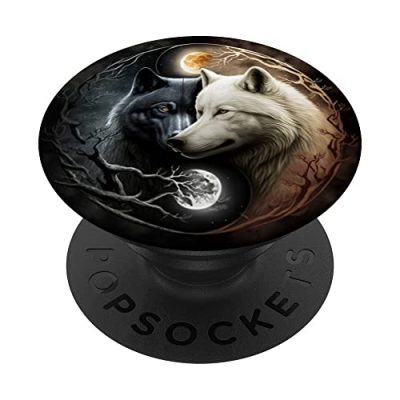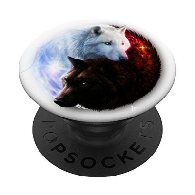 Get this cool yin and yang white and black wolves PopSocket for someone who loves wolves or is a wolf lover in general. It is great for men, women, and children. The swappable PopGrip allows you to switch out the top with another design or remove it completely for wireless charging. The expandable stand is perfect for watching videos, taking group photos, video calls, and hands-free Skype sessions. The advanced adhesive ensures easy removal and repositioning on most devices and cases. Please note that it may not stick to some silicone, waterproof, or highly-textured cases, but works best with smooth, hard plastic cases. It is compatible with iPhone 11 but not with iPhone 11 Pro or iPhone 11 ProMax without a suitable case.