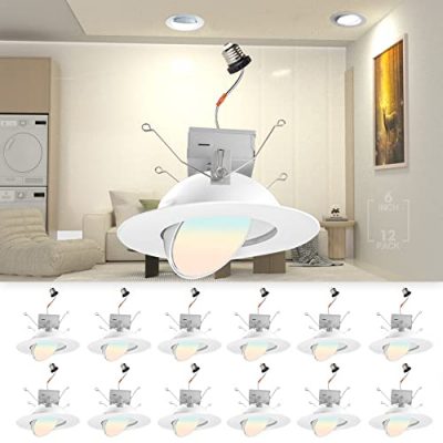 The Sunco LED Can Lights Eyeball Retrofit Gimbal is a top-rated 5 inch / 6 inch retrofit gimbal with selectable color temperature. It offers easy CCT selection with a slider switch on the back, allowing you to choose from 5 colors (2700K, 3000K, 3500K, 4000K, 5000K). The light is dimmable, providing seamless dimming capabilities from 100% to 10% to fit any mood or decor. Installation is simple, suitable for damp locations, and adjustable to fit 5 inch or 6 inch housing. The LED retrofits turn on instantaneously with LED flicker-free technology. It comes with a 7-year warranty and is backed by industry-leading warranties and knowledgeable support specialists.