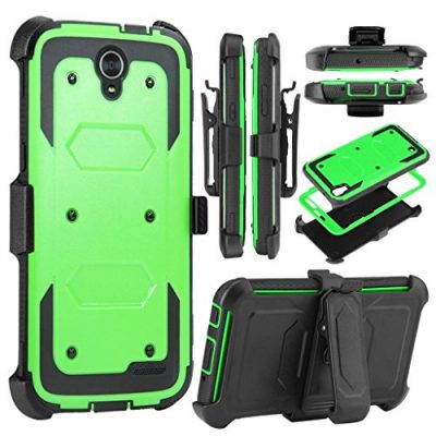 The KooJoee Green Armor Defender Case is a shockproof and versatile full body holster case designed for ZTE Prestige 2 N9136, ZTE ZFive 2, Prestige N9132, Avid Trio Z833, Sonata 3 Z832, Maven 2 Z831, and Avid Plus Z828. It offers a 2-in-1 hybrid shockproof and hard armor shell with a built-in screen protector and a swivel belt clip for convenient carrying. The case provides full access to the phone’s interface, camera lens, ports, and functions. It is made of a shock-absorbing TPU interior and a polycarbonate exterior, ensuring maximum protection for your device. However, some users have reported issues with unresponsive icons and difficulty in disassembly. Overall, the KooJoee Green Armor Defender Case offers good value and quality for phone protection.