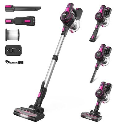 The INSE Cordless Vacuum Cleaner is a powerful and versatile cleaning tool that is perfect for homes with pets. With its high-efficient motor and adjustable suction power modes, it provides quick and efficient cleaning on various surfaces. The vacuum features a long-lasting battery and fast charging capabilities, allowing for up to 45 minutes of runtime. It also has a 5-Stage Advanced Filtration System that traps 99.99% of microscopic particles, ensuring cleaner air. The lightweight design and telescoping wand make it easy to use and maneuver, while the LED light on the brush head helps capture even the tiniest bits of dust. With multiple charging methods and easy storage options, this cordless vacuum cleaner offers convenience and functionality. Score: 8.5/10