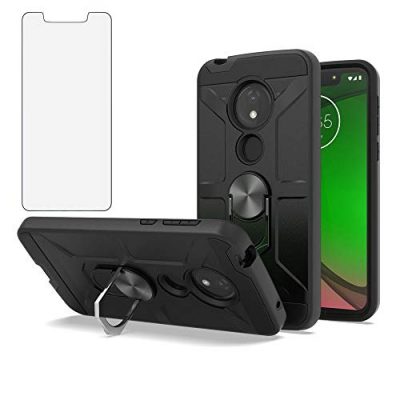 The Phone Case for Moto G7 Play/MotoG7 Optimo XT1952DL/Tmobile Revvlry is a stylish and protective accessory for your device. It comes with a tempered glass screen protector and a 360° rotating ring holder. The phone case features a hybrid design with a soft silicone inner layer and a tough outer layer for dual-layer protection. The built-in metal disk allows you to attach it to a magnetic car mount. This case is specifically designed for Moto G7 Play/MotoG7 Optimo XT1952DL/Tmobile Revvlry and is not compatible with other devices. The package includes one phone case and one tempered glass screen protector as a free gift.