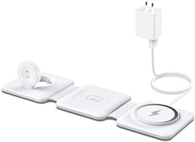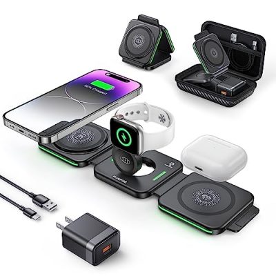 The MURPISO 3-in-1 Magnetic Foldable Wireless Charger is a fantastic travel companion for Apple users. Its foldable design, storage case, and adapter make it highly portable and convenient. The charger supports wireless charging for your iPhone, AirPods, and iWatch, and the built-in magnet ensures a secure connection. The breathing indicator light design adds a touch of style and the multiple security protections guarantee the safety of your devices. While it may be affected by thick phone cases and the charging speed could be faster, the overall quality and usefulness of this charger make it a great choice. With a score of 9 out of 10, the MURPISO 3-in-1 Magnetic Foldable Wireless Charger is a reliable and efficient charging solution for Apple device users.