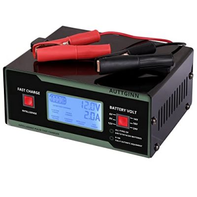 The 6/8/12/14/16/24V Battery Charger by AUTTGINN is a smart and adjustable car battery charger and maintainer. With automatic voltage matching and amperage rate adjustment, this charger is suitable for a variety of battery types and can be used on vehicles such as cars, RVs, motorcycles, and more. It features a full-microcomputer screen display, intelligent fan control, and a useful power-switch for easy control. The charger also includes multiple charging stages, including Desulphation, Soft Start, Bulk Charge, Absorption, Float, Battery Test, Recondition, and Auto-stop. Its compact size and black color make it convenient and stylish. Key features include automatic voltage matching, microprocessor-controlled amperage rate adjustment, suitable for all types of lead-acid batteries, and a wide working temperature range. The charger has received a customer rating of 4.2/5 based on positive reviews from users who found it easy to use and effective.