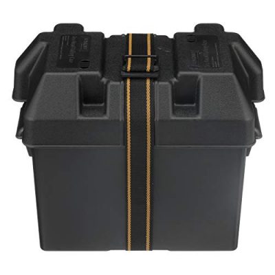 The Camco Large Battery Box with Straps and Hardware is a durable battery storage solution for RV, automotive, and marine batteries. Its lightweight and heavy-duty corrosion-resistant polypropylene construction ensures long-lasting performance. The box fits group size 27, 30, and 31 batteries and meets USCG CFR 183.420 and ABYC E-10.7 specifications. With a lift-off lid, durable woven hold-down strap, foot clamps, and stainless steel screws, it provides secure and convenient battery storage. The inside dimensions of the box are 7-1/4" x 13-1/4" x 8-5/8", with 2" additional headroom for battery terminals. This large battery box is available in black color and comes with a customer rating of 4.6 out of 5.