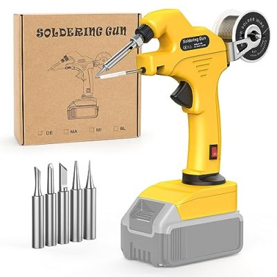 The Cordless Soldering Iron Kit for DeWALT 18V 20V Max Battery is a portable and cordless soldering iron gun that is compatible with DeWALT 20V/18V series lithium-ion batteries. With a built-in ceramic heating core, it provides fast pre-heating and can reach up to 450℃. The soldering iron kit is lightweight, easy to carry, and perfect for various applications including circuit board welding, appliance repair, jewelry making, and more. It features a safety design with a low-voltage protection board and anti-bend tail wire. However, it does not include the battery. Overall, this soldering iron kit offers convenience and efficiency for both beginners and professionals alike.