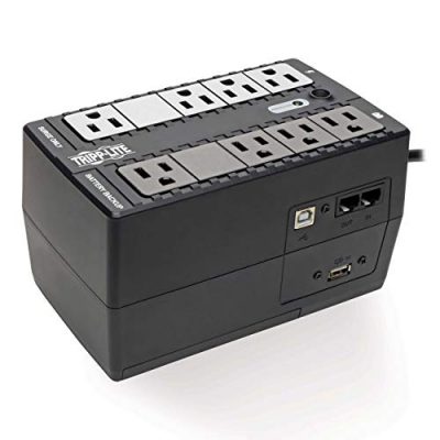 The Tripp Lite 650VA UPS Battery Backup is a basic home UPS that protects your devices from blackouts, brownouts, and surges. With 8 outlets, USB charging, and dataline protection, it offers versatile connectivity options. This UPS provides 17 minutes of power to an energy-efficient desktop PC and small monitor, has a compact design, and features high efficiency to save electricity. It also comes with a 3-year warranty and $100,000 insurance. The USB port allows for safe shutdown and file saving, and the unit is fully supported by Tripp Lite's expert technical support team. Overall, the Tripp Lite 650VA UPS Battery Backup is a reliable and affordable solution for home and office use.