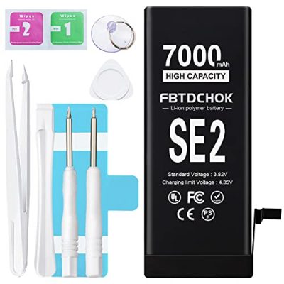 Introducing the FBTDCHOK New Version 7000mAh Higher Capacity Battery Compatible with iPhone SE2. This battery is designed to provide more power and longer service time for your iPhone SE2. With 7000mAh capacity, it offers more power than the original standard battery. The battery is a perfect replacement for your iPhone SE2, offering the same size and compatibility without any problems. It features Grade A+ cells for high-speed and efficient charging, along with multiple protections for user and device safety. The installation process is easy, and novices can follow relevant videos on YouTube. Enjoy 24 months warranty and 30-day money-back guarantee with excellent customer service.