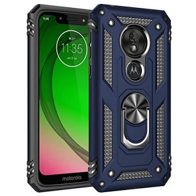 The Military Grade Drop Impact for Motorola Moto G7 Play Case is a heavy-duty protective case designed specifically for the Moto G7 Play. Its unique design gives your phone a new look and feel while providing excellent protection from drops, shocks, and dust. The case features a metal rotating ring kickstand and a built-in magnetic car mount for added convenience. With easy access to all buttons and controls, this case is perfect for outdoor activities. The reinforced corners provide extra strength, ensuring that your phone stays safe. The case comes in a stylish blue color and has a dimension of 6.06Lx3.03Wx0.51H.